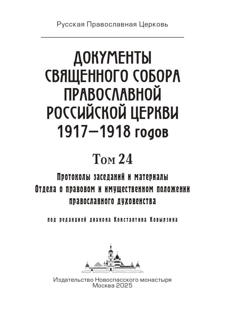 Вышел в свет очередной 24 том издания документов Священного Собора Православной Российской Церкви 1917-1918 гг. Ответственным редактором тома выступил диакон Константин Ковырзин.